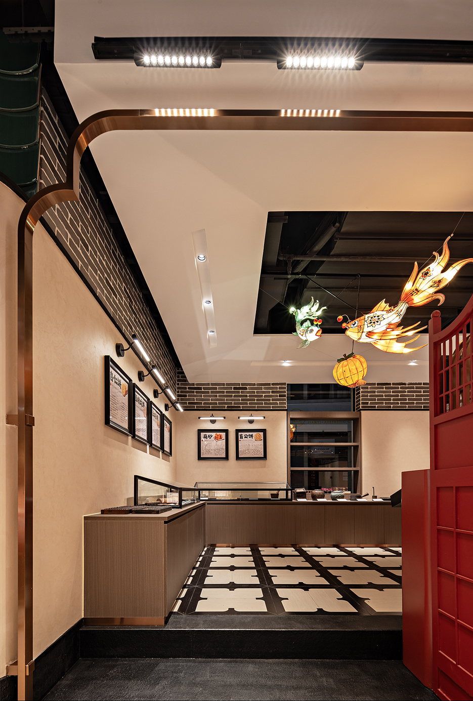 ·整体布局,以岭南文化为核心,融合佛山传统建筑美学、饮食文化及手工艺精髓,打造集零售、茶饮、酥饼于一体的沉浸式体验空间,传递“老佛山·新体验”的品牌理念。